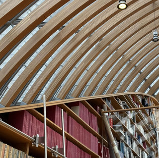 Une structure impeccable, calée au millimètre, avec des verres à double courbure, qui couronne le bâtiment et qui abrite des bureaux pour l’administration et l'espace des chercheurs. Le volume est baigné de lumière naturelle, même par un soir pluvieux comme celui de notre visite ! Une résille perforée à l’extérieur protège des regards, filtre les rayons du soleil et habille l’ensemble du bâtiment en une carapace étonnante, y compris les niveaux en béton projeté qui protège les collections. Tonalité du zinc et de certains cieux parisiens, toile de fond des bouleaux (arbre chéri de RPBW semble-t-il) qui s’étirent vers le ciel.